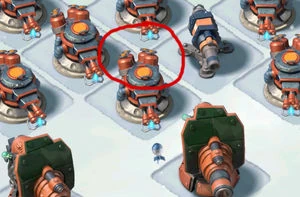 Gdy budynki lub wieżyczki są tak ulokowane, możemy zadać obrażenia im wszystkim naraz.
